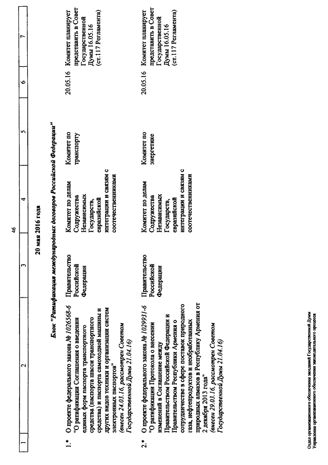 "О КАЛЕНДАРЕ РАССМОТРЕНИЯ ВОПРОСОВ ГОСУДАРСТВЕННОЙ ДУМОЙ С 10 ПО 20 МАЯ 2016 ГОДА"