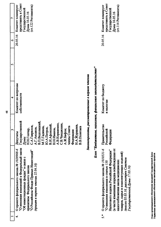 "О КАЛЕНДАРЕ РАССМОТРЕНИЯ ВОПРОСОВ ГОСУДАРСТВЕННОЙ ДУМОЙ С 10 ПО 20 МАЯ 2016 ГОДА"