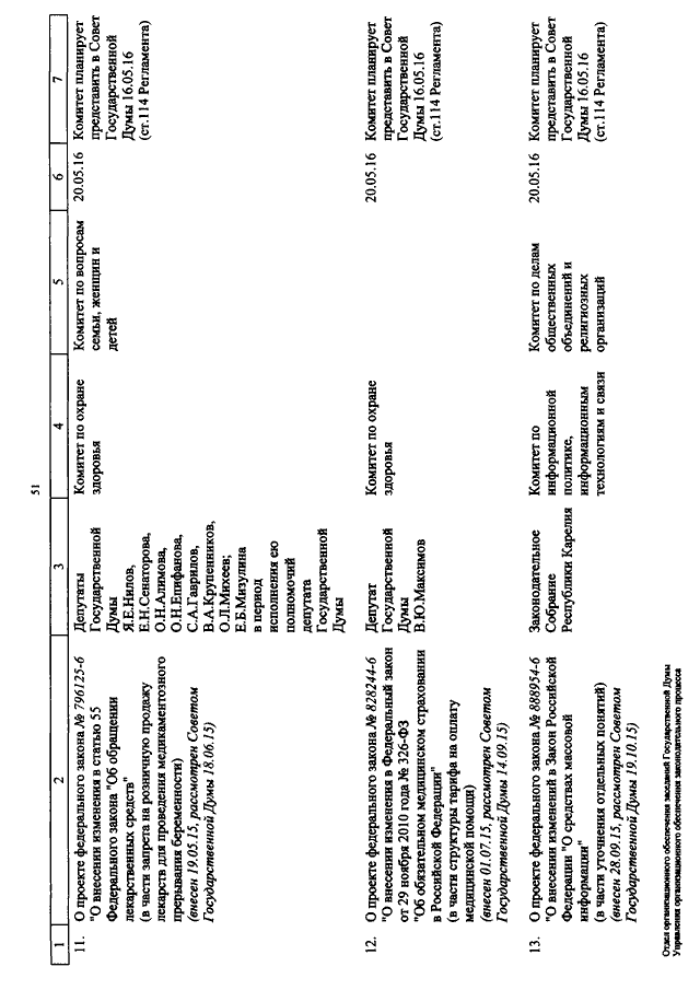 "О КАЛЕНДАРЕ РАССМОТРЕНИЯ ВОПРОСОВ ГОСУДАРСТВЕННОЙ ДУМОЙ С 10 ПО 20 МАЯ 2016 ГОДА"