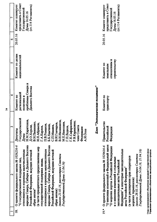 "О КАЛЕНДАРЕ РАССМОТРЕНИЯ ВОПРОСОВ ГОСУДАРСТВЕННОЙ ДУМОЙ С 10 ПО 20 МАЯ 2016 ГОДА"