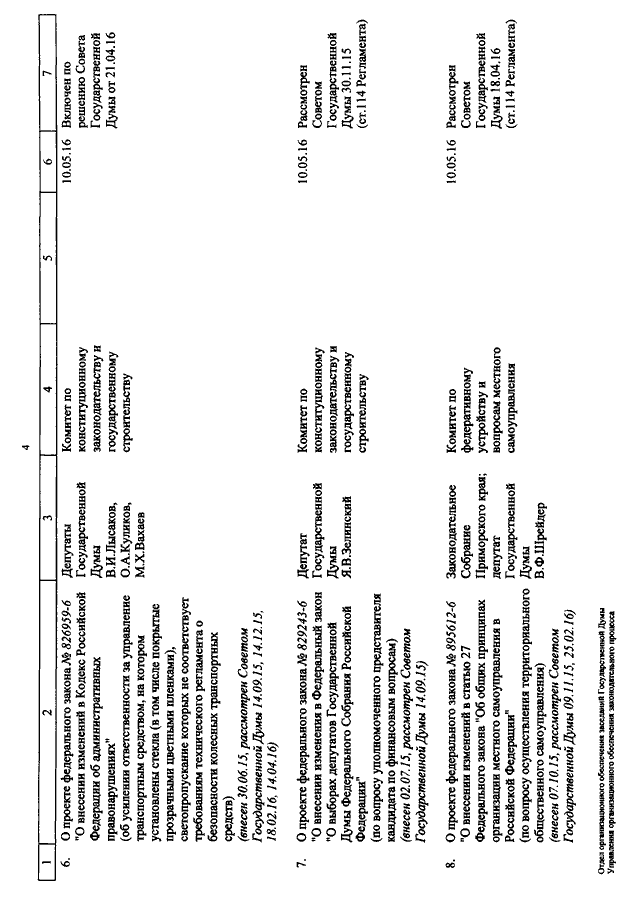"О КАЛЕНДАРЕ РАССМОТРЕНИЯ ВОПРОСОВ ГОСУДАРСТВЕННОЙ ДУМОЙ С 10 ПО 20 МАЯ 2016 ГОДА"
