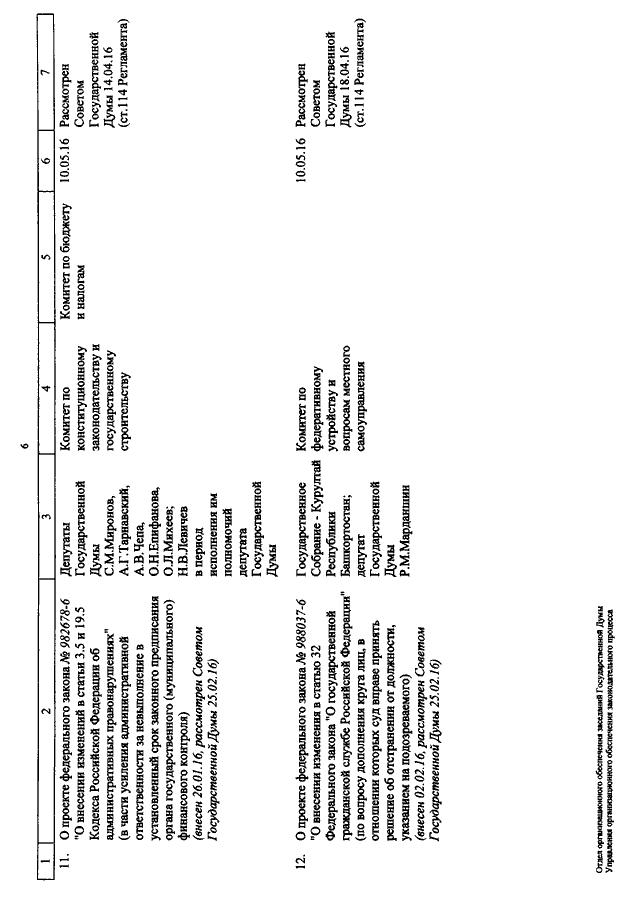 "О КАЛЕНДАРЕ РАССМОТРЕНИЯ ВОПРОСОВ ГОСУДАРСТВЕННОЙ ДУМОЙ С 10 ПО 20 МАЯ 2016 ГОДА"