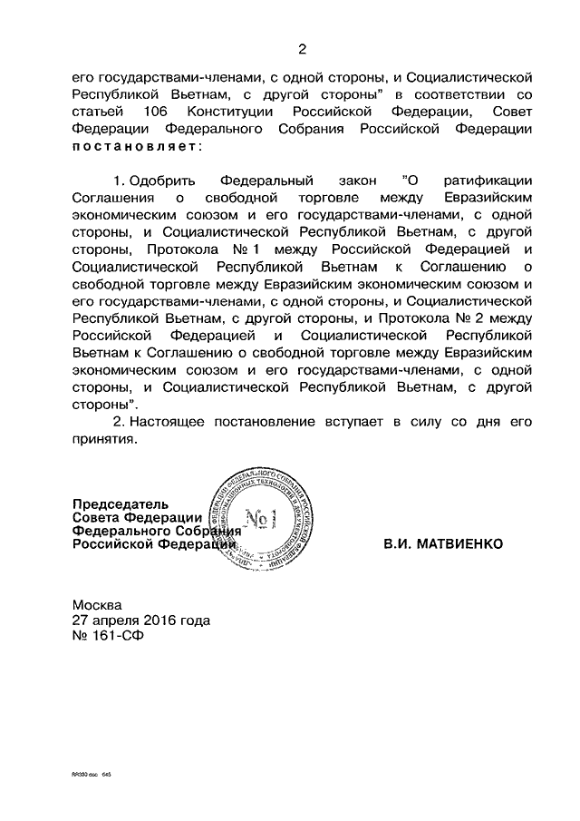 ПОСТАНОВЛЕНИЕ СФ ФС РФ от 27.04.2016 N 161-СФ