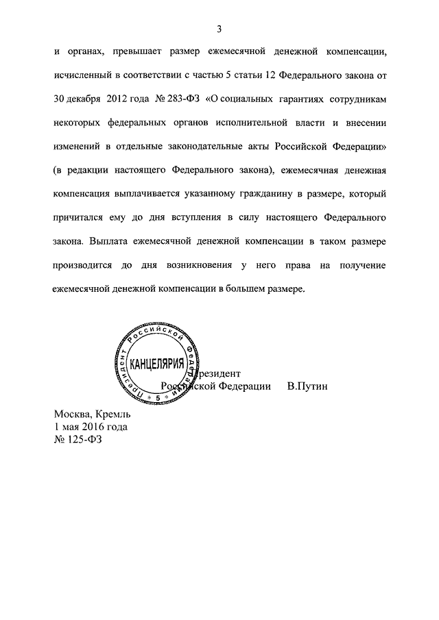 ФЕДЕРАЛЬНЫЙ ЗАКОН от 01.05.2016 N 125-ФЗ