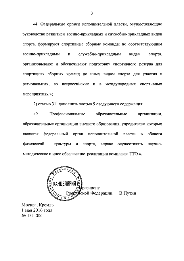 ФЕДЕРАЛЬНЫЙ ЗАКОН от 01.05.2016 N 131-ФЗ