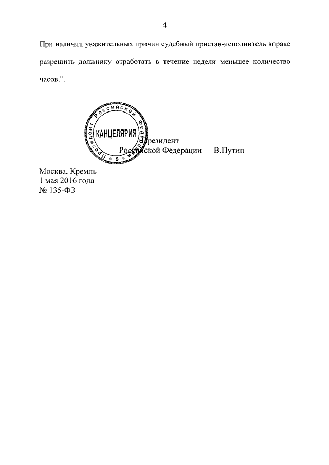 ФЕДЕРАЛЬНЫЙ ЗАКОН от 01.05.2016 N 135-ФЗ