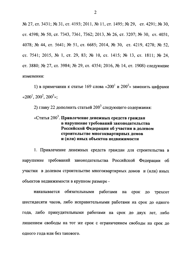 "О ВНЕСЕНИИ ИЗМЕНЕНИЙ В УГОЛОВНЫЙ КОДЕКС РОССИЙСКОЙ ФЕДЕРАЦИИ И ОТДЕЛЬНЫЕ ЗАКОНОДАТЕЛЬНЫЕ АКТЫ РОССИЙСКОЙ ФЕДЕРАЦИИ В ЧАСТИ УСТАНОВЛЕНИЯ УГОЛОВНОЙ ОТВЕТСТВЕННОСТИ ЗА НАРУШЕНИЕ ТРЕБОВАНИЙ ЗАКОНОДАТЕЛЬСТВА ОБ УЧАСТИИ В ДОЛЕВОМ СТРОИТЕЛЬСТВЕ МНОГОКВАРТИРНЫХ ДОМОВ И (ИЛИ) ИНЫХ ОБЪЕКТОВ НЕДВИЖИМОСТИ"