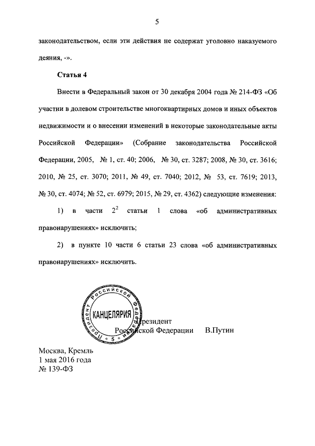 ФЕДЕРАЛЬНЫЙ ЗАКОН от 01.05.2016 N 139-ФЗ