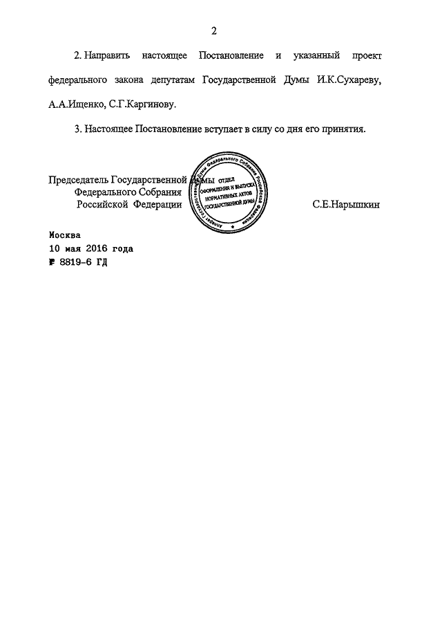 ПОСТАНОВЛЕНИЕ ГД ФС РФ от 10.05.2016 N 8819-6 ГД