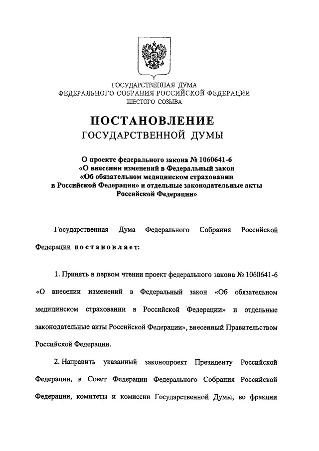 "О ПРОЕКТЕ ФЕДЕРАЛЬНОГО ЗАКОНА N 1060641-6 "О ВНЕСЕНИИ ИЗМЕНЕНИЙ В