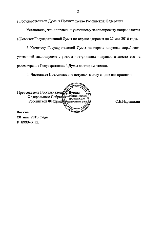 ПОСТАНОВЛЕНИЕ ГД ФС РФ от 20.05.2016 N 8998-6 ГД
