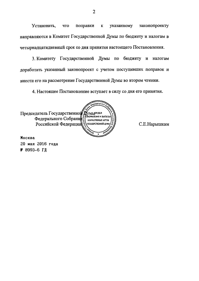 ПОСТАНОВЛЕНИЕ ГД ФС РФ от 20.05.2016 N 8993-6 ГД