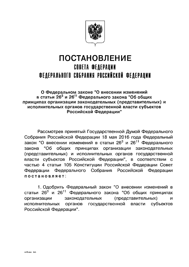 ПОСТАНОВЛЕНИЕ СФ ФС РФ от 25.05.2016 N 225-СФ
