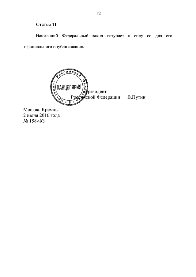 ФЕДЕРАЛЬНЫЙ ЗАКОН от 02.06.2016 N 158-ФЗ