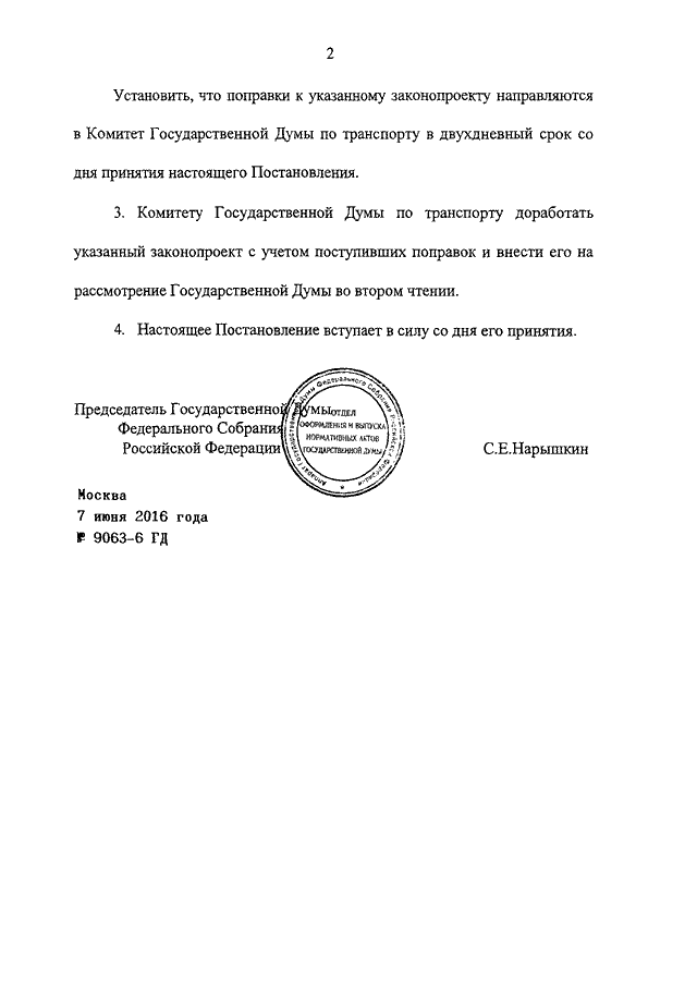 ПОСТАНОВЛЕНИЕ ГД ФС РФ от 07.06.2016 N 9063-6 ГД
