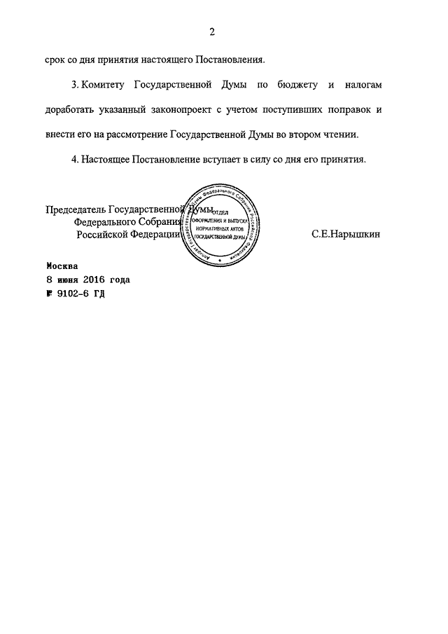 ПОСТАНОВЛЕНИЕ ГД ФС РФ от 08.06.2016 N 9102-6 ГД