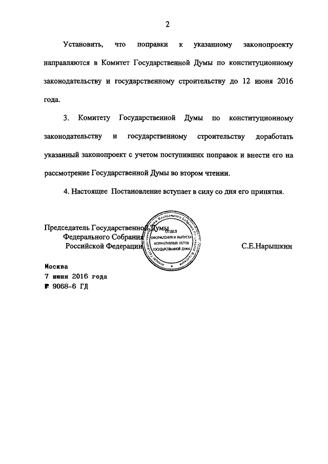 ПОСТАНОВЛЕНИЕ ГД ФС РФ от 07.06.2016 N 9068-6 ГД