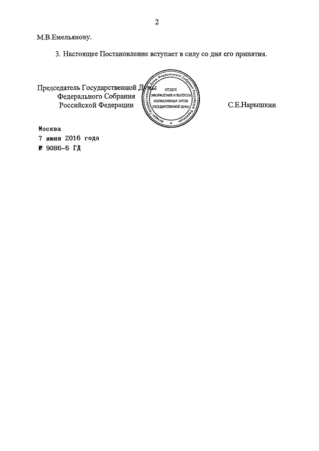 ПОСТАНОВЛЕНИЕ ГД ФС РФ от 07.06.2016 N 9086-6 ГД