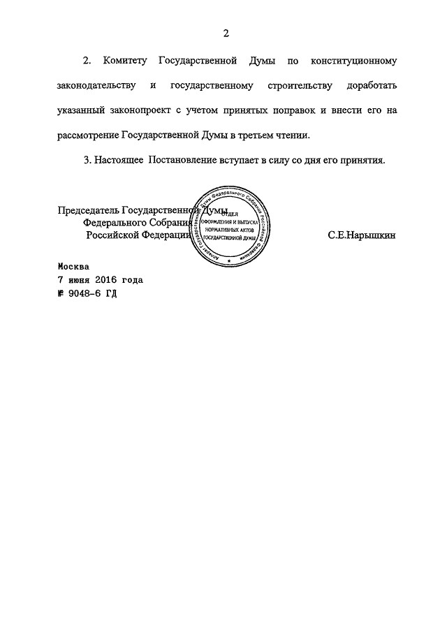 ПОСТАНОВЛЕНИЕ ГД ФС РФ от 07.06.2016 N 9048-6 ГД