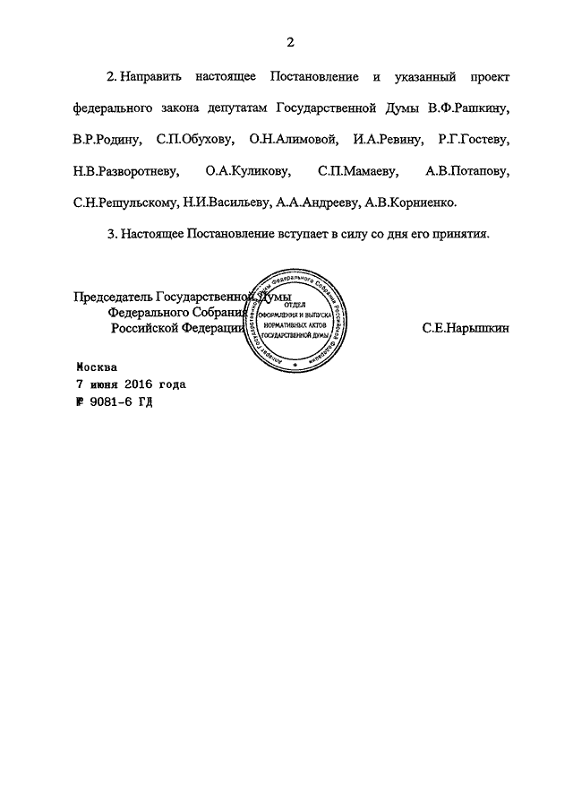 ПОСТАНОВЛЕНИЕ ГД ФС РФ от 07.06.2016 N 9081-6 ГД