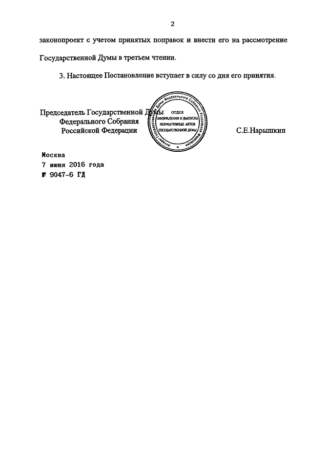 ПОСТАНОВЛЕНИЕ ГД ФС РФ от 07.06.2016 N 9047-6 ГД
