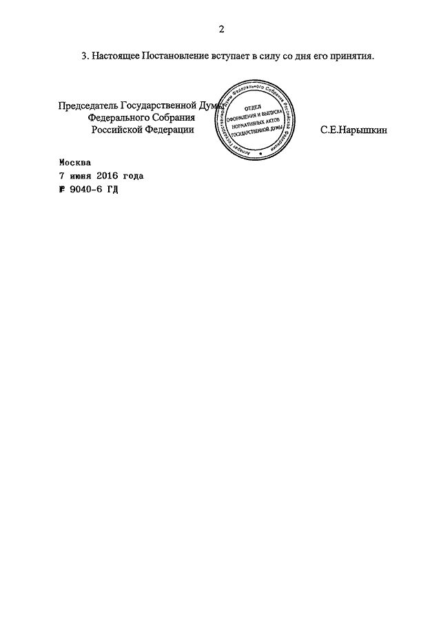 ПОСТАНОВЛЕНИЕ ГД ФС РФ от 07.06.2016 N 9040-6 ГД
