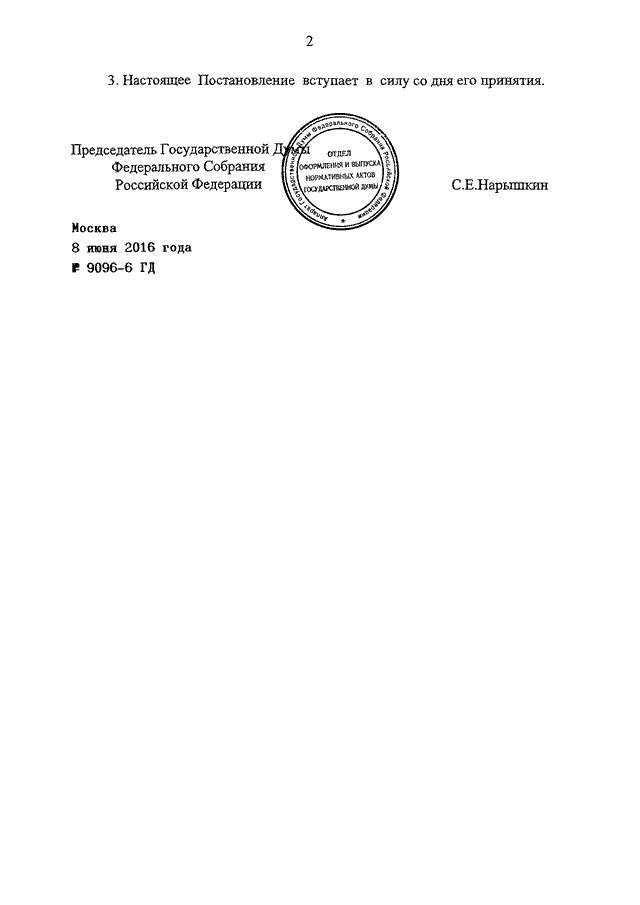 ПОСТАНОВЛЕНИЕ ГД ФС РФ от 08.06.2016 N 9096-6 ГД