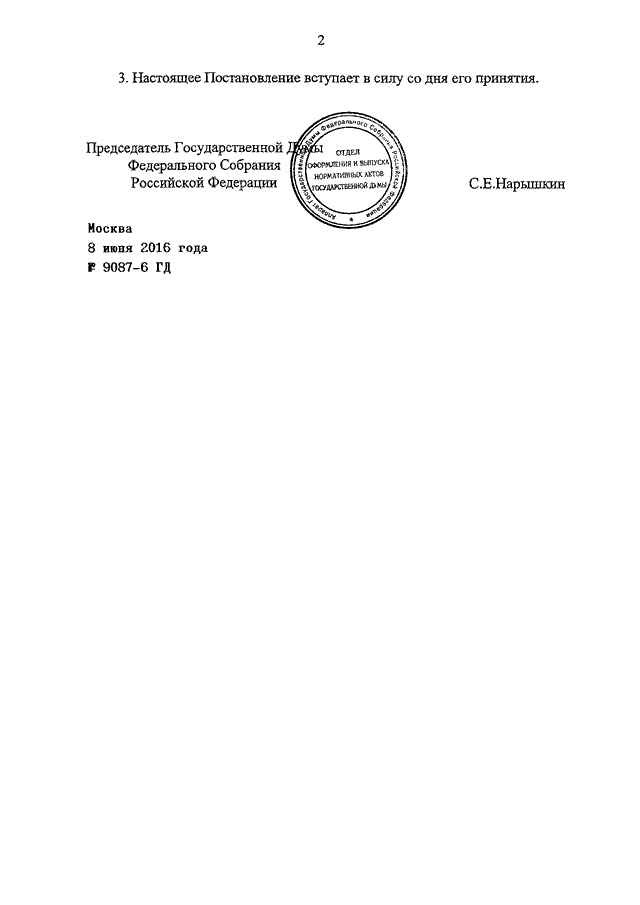 ПОСТАНОВЛЕНИЕ ГД ФС РФ от 08.06.2016 N 9087-6 ГД