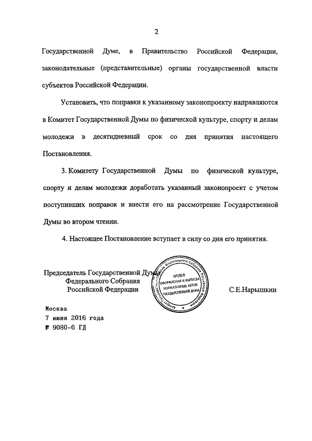 ПОСТАНОВЛЕНИЕ ГД ФС РФ от 07.06.2016 N 9080-6 ГД