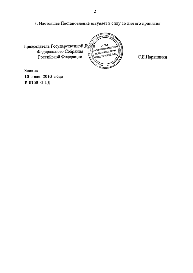 ПОСТАНОВЛЕНИЕ ГД ФС РФ от 10.06.2016 N 9156-6 ГД