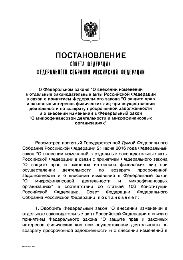 ЗАКОНОДАТЕЛЬНЫЕ АКТЫ РОССИЙСКОЙ ФЕДЕРАЦИИ В СВЯЗИ С ПРИНЯТИЕМ