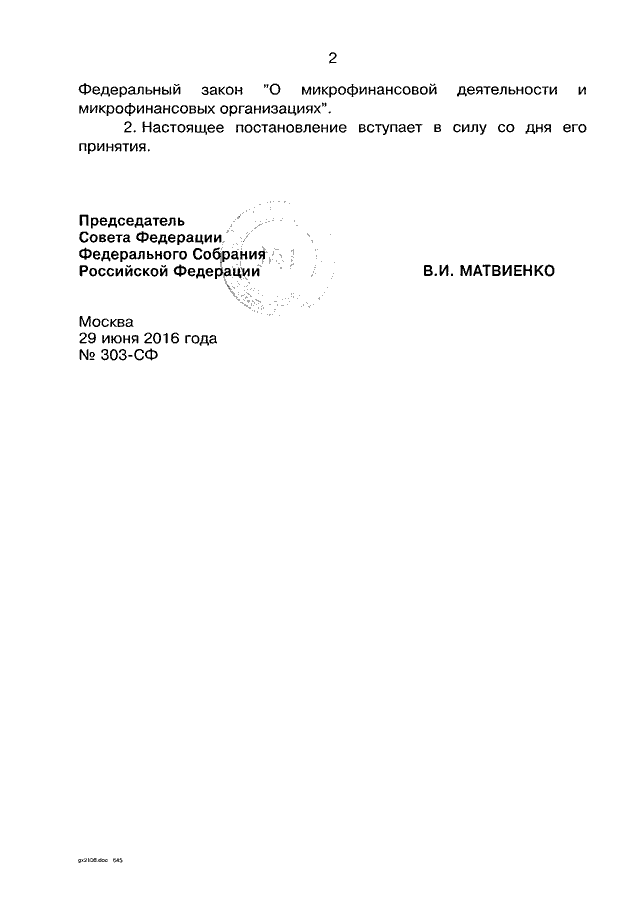 ПОСТАНОВЛЕНИЕ СФ ФС РФ от 29.06.2016 N 303-СФ