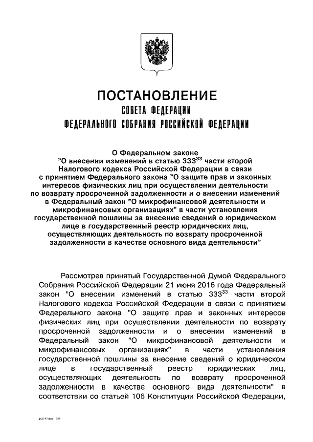"О ФЕДЕРАЛЬНОМ ЗАКОНЕ "О ВНЕСЕНИИ ИЗМЕНЕНИЙ В СТАТЬЮ 333.33 ЧАСТИ