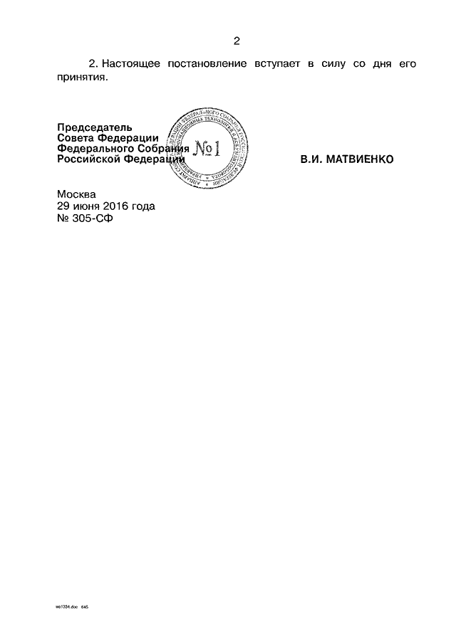 ПОСТАНОВЛЕНИЕ СФ ФС РФ от 29.06.2016 N 305-СФ
