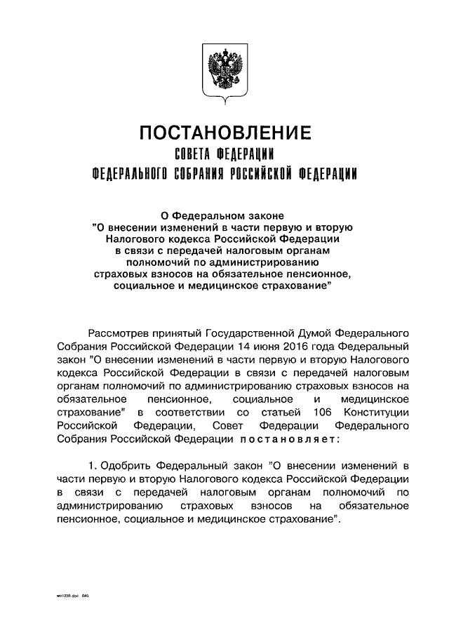 ПОСТАНОВЛЕНИЕ СФ ФС РФ от 29.06.2016 N 309-СФ