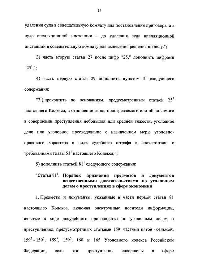 "О ВНЕСЕНИИ ИЗМЕНЕНИЙ В УГОЛОВНЫЙ КОДЕКС РОССИЙСКОЙ ФЕДЕРАЦИИ И УГОЛОВНО - ПРОЦЕССУАЛЬНЫЙ КОДЕКС РОССИЙСКОЙ ФЕДЕРАЦИИ ПО ВОПРОСАМ СОВЕРШЕНСТВОВАНИЯ ОСНОВАНИЙ И ПОРЯДКА ОСВОБОЖДЕНИЯ ОТ УГОЛОВНОЙ ОТВЕТСТВЕННОСТИ"