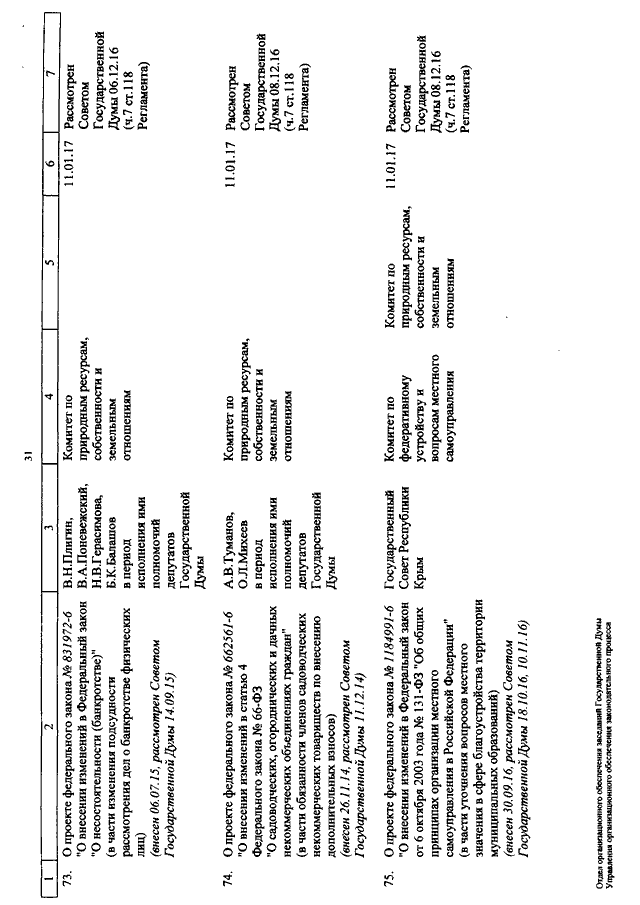 "О КАЛЕНДАРЕ РАССМОТРЕНИЯ ВОПРОСОВ ГОСУДАРСТВЕННОЙ ДУМОЙ С 11 ПО 27 ЯНВАРЯ 2017 ГОДА"