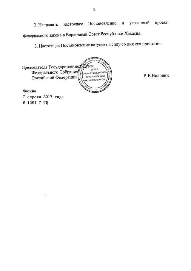 ПОСТАНОВЛЕНИЕ ГД ФС РФ от 07.04.2017 N 1291-7 ГД