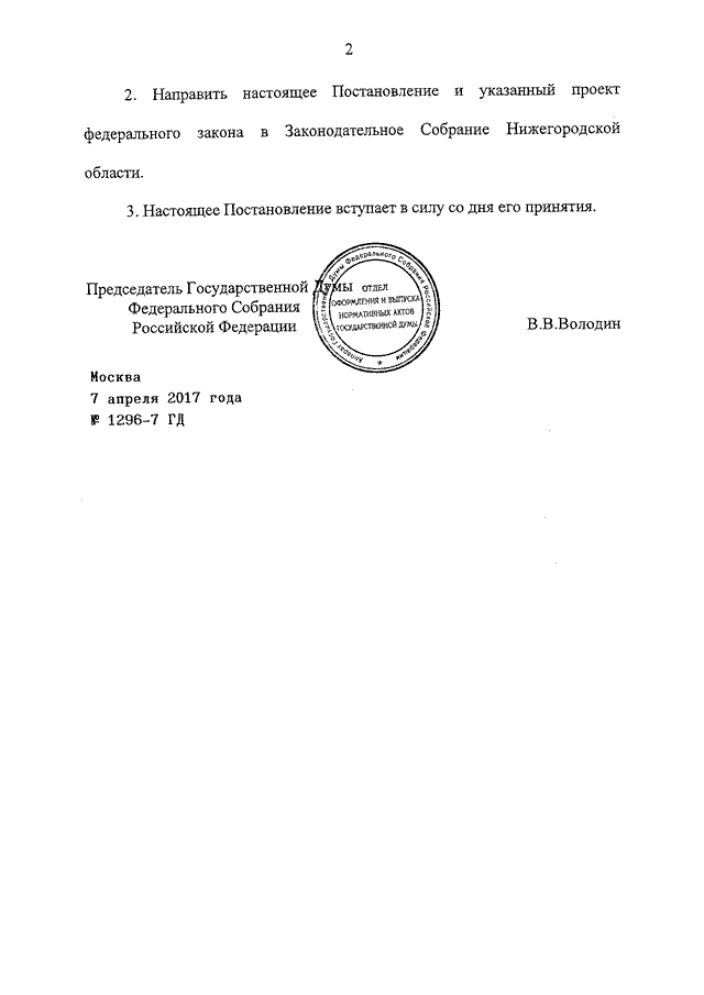 ПОСТАНОВЛЕНИЕ ГД ФС РФ от 07.04.2017 N 1296-7 ГД
