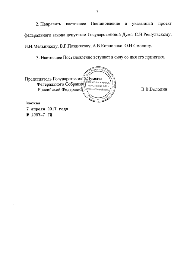 ПОСТАНОВЛЕНИЕ ГД ФС РФ от 07.04.2017 N 1297-7 ГД