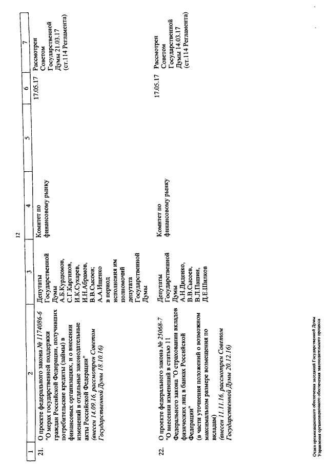 "О КАЛЕНДАРЕ РАССМОТРЕНИЯ ВОПРОСОВ ГОСУДАРСТВЕННОЙ ДУМОЙ С 17 ПО 26 МАЯ 2017 ГОДА"