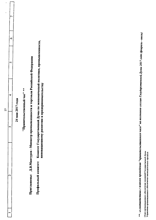 "О КАЛЕНДАРЕ РАССМОТРЕНИЯ ВОПРОСОВ ГОСУДАРСТВЕННОЙ ДУМОЙ С 17 ПО 26 МАЯ 2017 ГОДА"