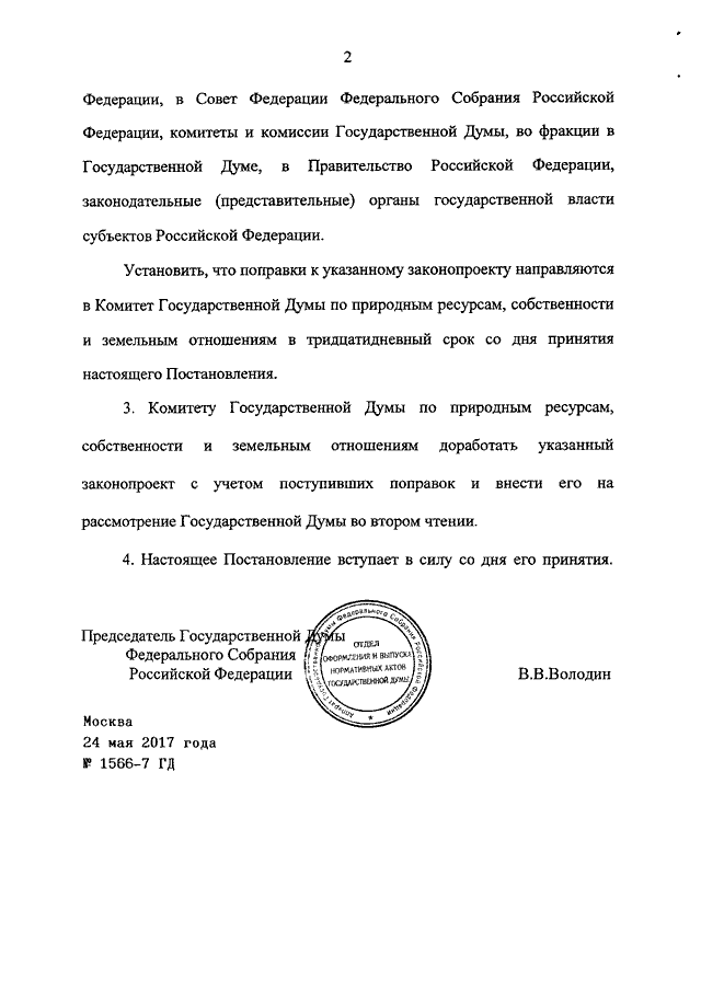ПОСТАНОВЛЕНИЕ ГД ФС РФ от 24.05.2017 N 1566-7 ГД