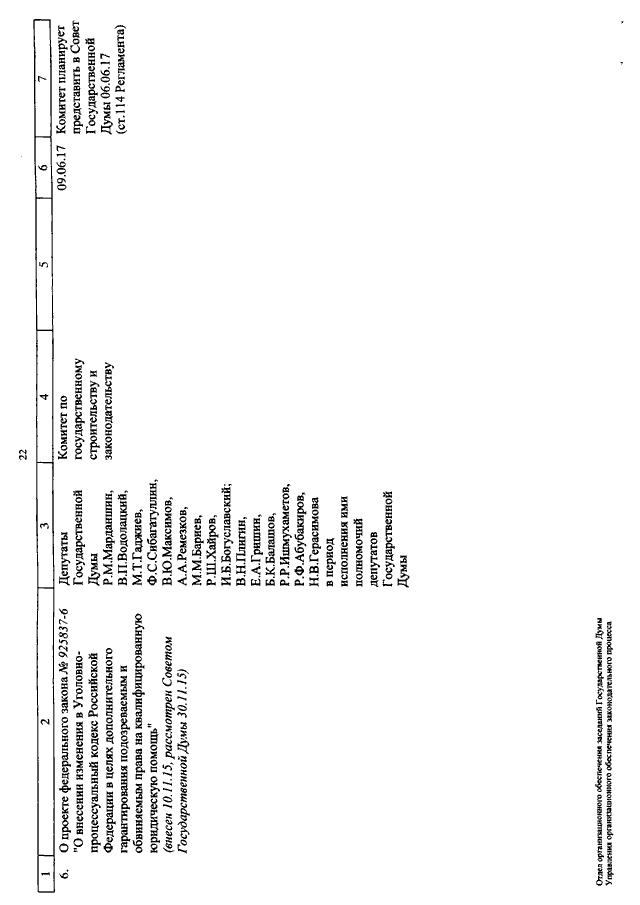 "О КАЛЕНДАРЕ РАССМОТРЕНИЯ ВОПРОСОВ ГОСУДАРСТВЕННОЙ ДУМОЙ С 7 ПО 23 ИЮНЯ 2017 ГОДА"