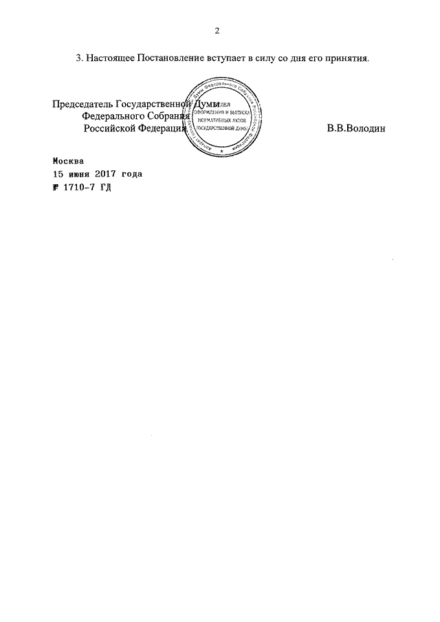 ПОСТАНОВЛЕНИЕ ГД ФС РФ от 15.06.2017 N 1710-7 ГД