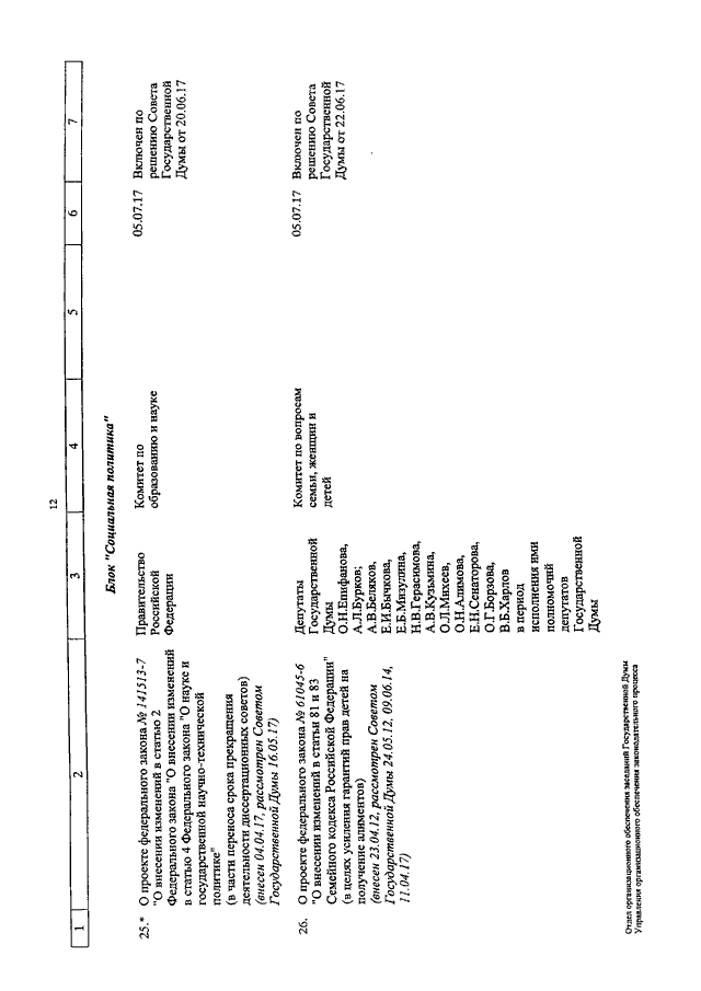 "О КАЛЕНДАРЕ РАССМОТРЕНИЯ ВОПРОСОВ ГОСУДАРСТВЕННОЙ ДУМОЙ С 5 ПО 21 ИЮЛЯ 2017 ГОДА"