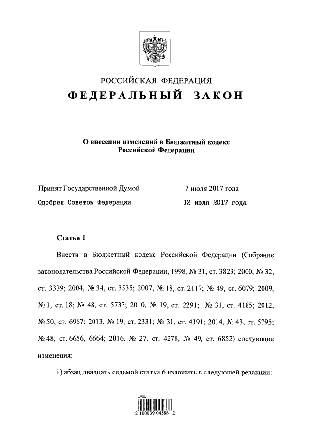 "О ВНЕСЕНИИ ИЗМЕНЕНИЙ В БЮДЖЕТНЫЙ КОДЕКС РОССИЙСКОЙ ФЕДЕРАЦИИ"
