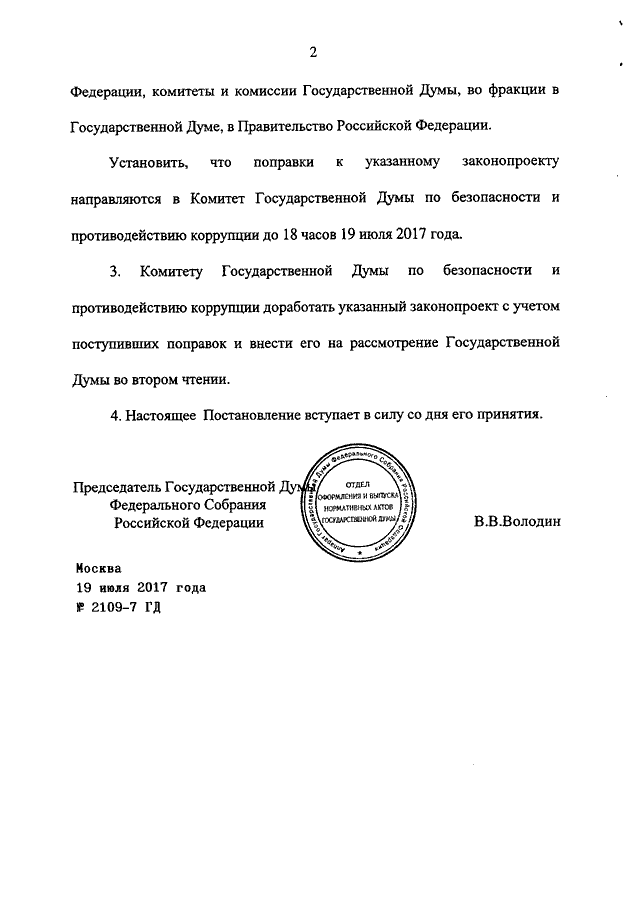ПОСТАНОВЛЕНИЕ ГД ФС РФ от 19.07.2017 N 2109-7 ГД