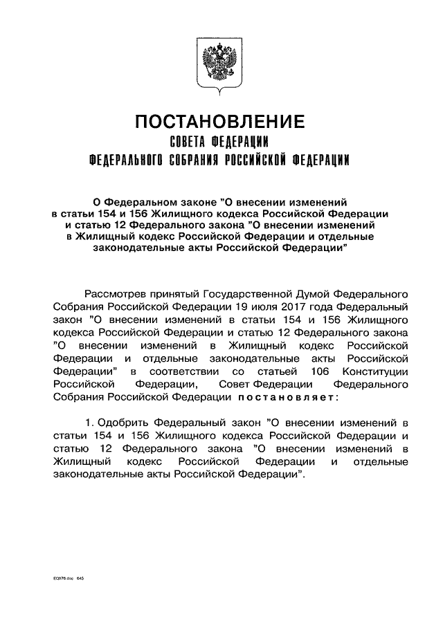 ЗАКОНА "О ВНЕСЕНИИ ИЗМЕНЕНИЙ В ЖИЛИЩНЫЙ КОДЕКС РОССИЙСКОЙ