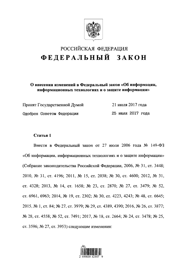 "О ВНЕСЕНИИ ИЗМЕНЕНИЙ В ФЕДЕРАЛЬНЫЙ ЗАКОН "ОБ ИНФОРМАЦИИ, ИНФОРМАЦИОННЫХ ТЕХНОЛОГИЯХ И О ЗАЩИТЕ ИНФОРМАЦИИ"
